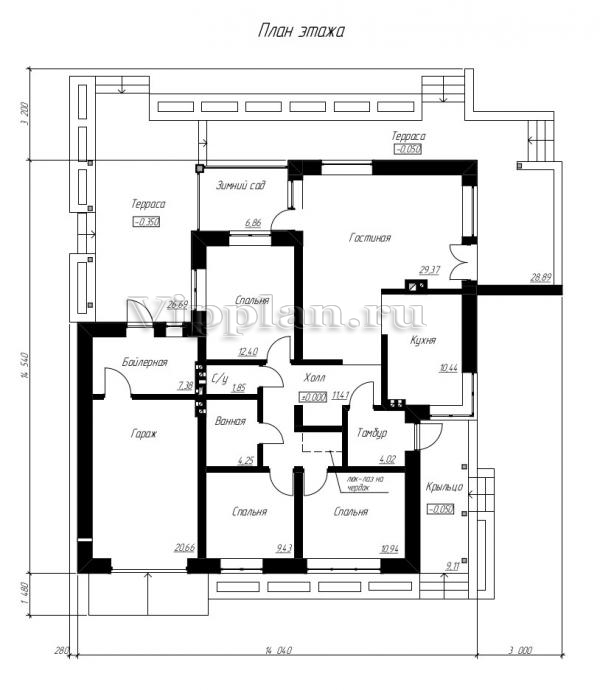 | Размеры дома: | 14.54м×14.04м |