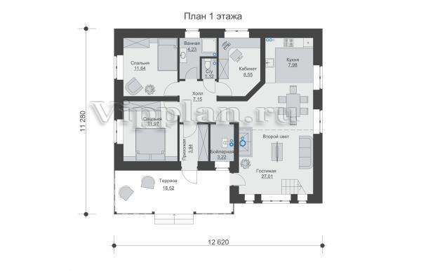 | Размеры дома: | 11.28м×12.62м |