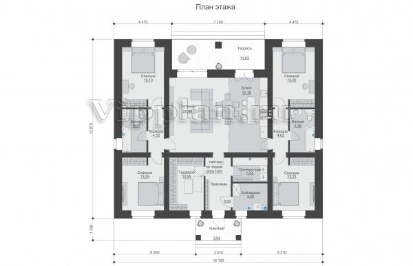 | Размеры дома: | 16.12м×13.87м |