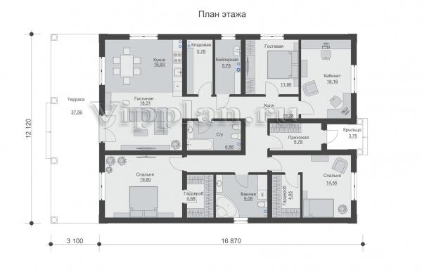 | Размеры дома: | 12.12м×19.97м |